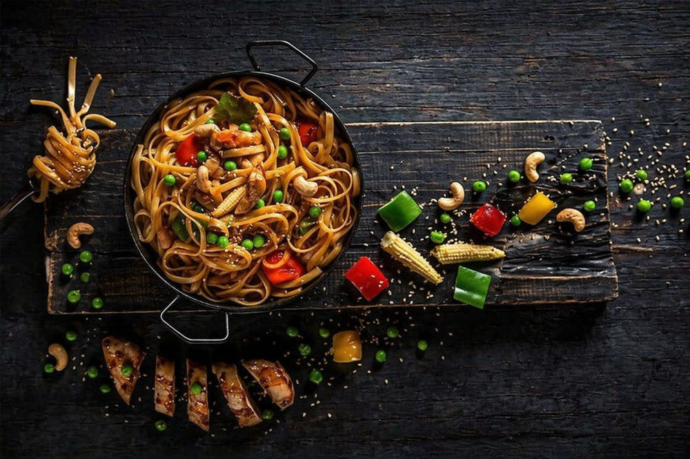 Вок. Ароматная лапша с овощами и сочным мясом, обжаренная в насыщенном соусе