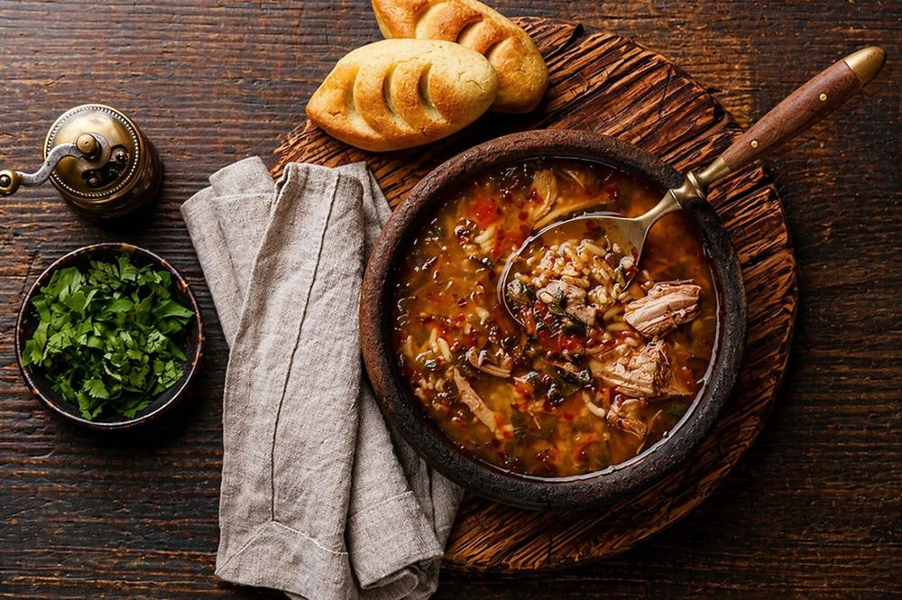 Пикантный грузинский суп с бараниной, рисом и ароматными специями, насыщенный и согревающий