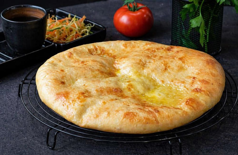 Пышная лепёшка с нежным тестом и щедрой сырной начинкой, запечённая до румяной корочки.