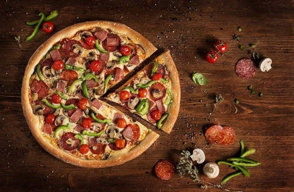 Мука, соль, куриное филе, грибы, сыр, специи, томатная паста